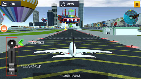 8、玩家讲这个油门向上拖动加速,这个地方辨明速度,拉到越高就越快的哦。