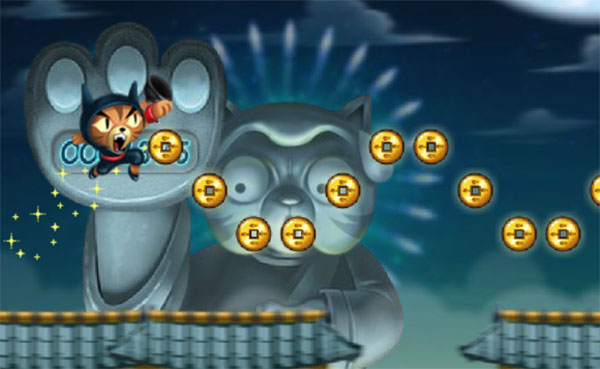 2、控制非常容易上手,只需触控屏幕即可控制忍者猫的跳跃,享受游戏的乐趣。