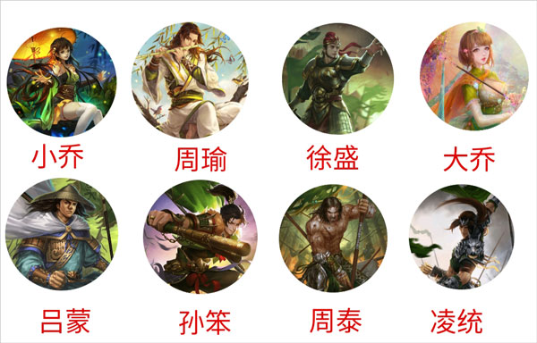 可以转移伤害的小乔;有界英姿,多少体力都能屯三牌的周瑜;杀能摸三牌的徐盛;流离摸两牌的大乔;克己屯一大波牌的吕蒙;有着激昂的孙笨;不死的小强周泰;一装三牌差的凌统。