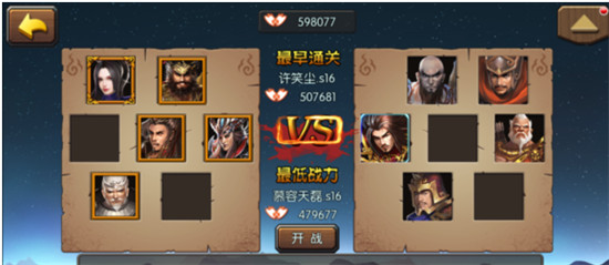以上是三星过关。假如你想尝试一下,最低战力,想到把自己的名字刻在上面那么不防试试下面一个阵形,毕竟大R土豪将升的很好,比最低战力也真比不过免费玩家。