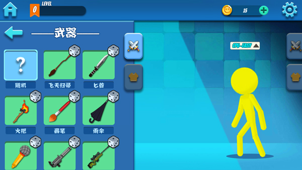 2、玩家在游戏选择火柴人搭配上顺手的武器后,进入格斗场景与敌人进行格斗;