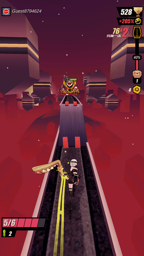 游戏中有丰富的角色造型、武器装备和套装,让玩家可以自由搭配,打造独特的战斗风格。玩法包括杀敌闯关、加速冲刺以及利用墙壁跳跃等技巧。游戏还加入了Fever模式和多种场景风格,提供多样化的游戏体验。