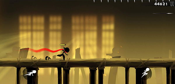在前半段路程当中考验的就是玩家们对于提速这个技能是不是已经熟练的掌握了,如果玩家们一个不留神就会被钉子给直接钉死。在玩家们通过前面一半的路程之后,后面的障碍物就是一下刺刀了,这些刺刀有的会比较的长,玩家们呢可以考虑用二连跳过关,有的不仅长而且还排的比较密集,这个时候就需要玩家们提速和连跳一起运用了,在连跳结束的瞬间玩家们可以立马使用提速,可以迅速回到地面上面,这样的话就算有障碍物会出现在玩家们的头顶的时候玩家们也能够快速的反应过来然后走下面的道路以免被扣血。在通过了这个关卡之后会得到勾玉的奖励,每个关卡都有星级的设置,三星的话就可以说是完美通关了。