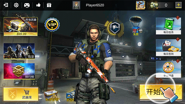 1、首先打开全球射击行动中文版,点击开始游戏;