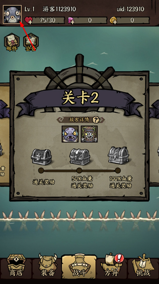 1、打开勇者之海免广告版,进入游戏如图,选择关卡;