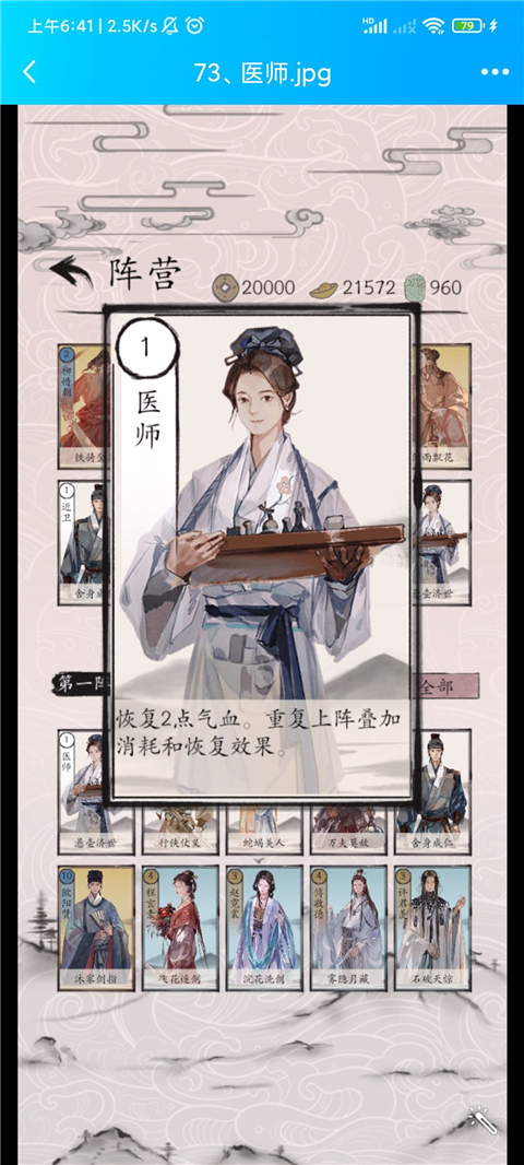 五:医师,1费恢复俩点气血(可叠加消耗与效果)