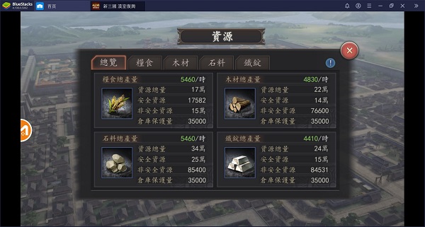 建筑建设过程中必不可少的资源包括「粮食」、「木材」、「石料」与「铁锭」4大种,分别由「农田」、「伐木场」、「采石场」与「冶炼厂」等4种建筑所产出。建筑等级越高,对应资源的每时产量就会越多。在游戏主界面里,点击资源类的建筑图形,然后再点击「收取」按钮,便可收取建筑所产生的资源。另外,打开背包里的资源宝箱后,将可以获得大量的建设资源。解锁「技法所」建筑后,还可以透过进行研发来增加资源产生的效率。