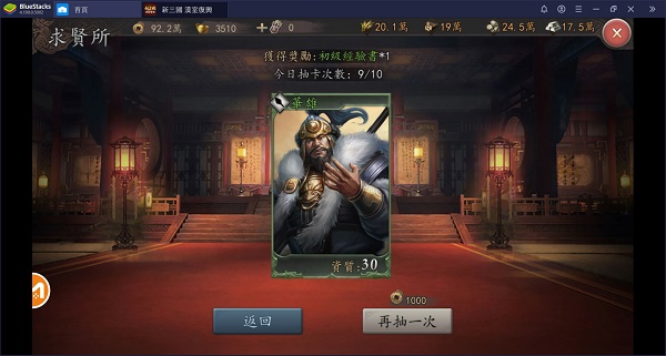 进行「招兵买马」时,玩家只能获得绿色、蓝色或紫色品质的武将,且每日限招募10次