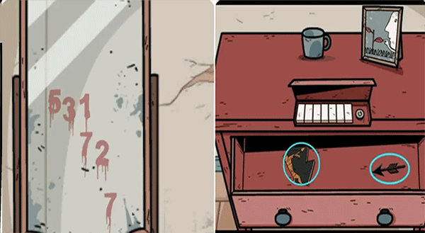 1、出发前先打开办公桌右边的抽屉拿到地图,再拿走桌上的糖包并点击道具栏里的地图来到前作的杀人屋。
