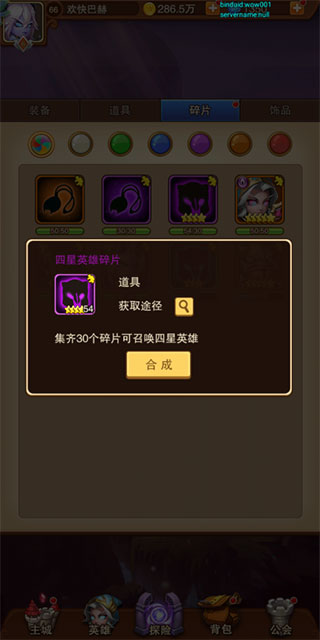-开到的英雄碎片不要急于合成,放在碎片那更节省背包空间,用的时候再合成。开背包格子是很贵的,能节省就节省点。