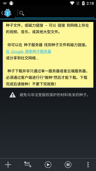 bt下载器app是一款支持资源搜索、种子下载的手机bt下载工具,英文名称aTorrent pro,用户可以通过它搜索查询想要的资源,不论是搜索视频、压缩包、文档还是图片都可以,支持BT文件、torrent种子、磁力链接等一系列下载加速功能,深受广大用户的喜爱。同时软件界面简洁,功能齐全,操作起来也是十分简单,即使是小白也可以快速上手操作,完全不用担心不会用的问题。除此之外,bt下载器还没有下载速度限制,网速有多快下载就可以多快,并且体积小巧,运行速度高,你还能当成一个视频播放器来使用,当你在搜索视频资源时,可以直接点资源进行播放,提前预览资源内容,边下边播,十分的不错,有需要的朋友可以下载体验,相信不会让你失望的。