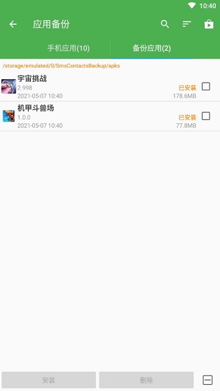 ● 批量还原备份的应用到手机● 将手机里的通讯录、短信、通话记录、书签、日历备份至存储卡中