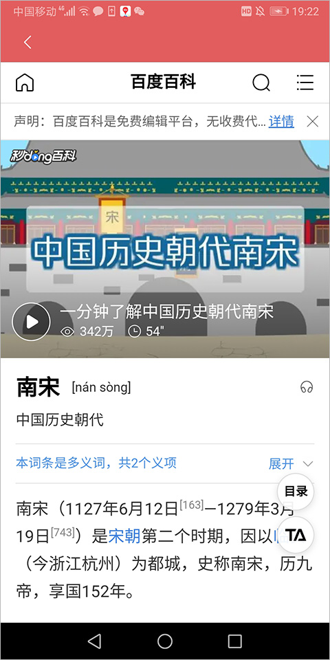 点击【了解更多】,即可打开百度百科该朝代的词条页面,通过该页面用户可以了解更多有关该朝代的信息