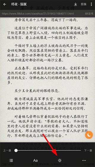 1、用户想要增加搜书大师里页面亮度的话,需要先去找到自己感兴趣的小说,然后点击进入小说的阅读页面里开始设置操作。