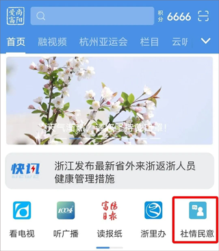 客户端首页除了“政务服务”“生活应用”,新增了“浙里办”“社情民意”等端口,提供公积金、不动产、社保、交通罚款、快递等查询服务,让用户足不出户就可在线办理各项业务。