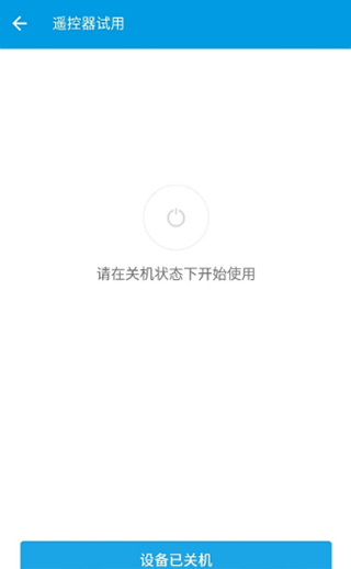 5、进入遥控器试用页面,试用时请先保持遥控器是关机的,选择设备关机。