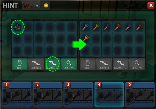 第一关:打开抽屉,得到里面的七把钥匙。