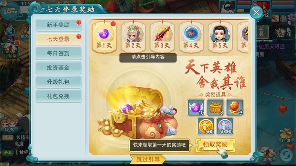 5、记得在左上角的“福利”系统内,领取签到、每日奖励,可以快速提升角色以及伙伴战力。