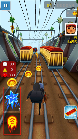 6、游戏左下角和右下角还有道具可以帮助玩家跑的更远;