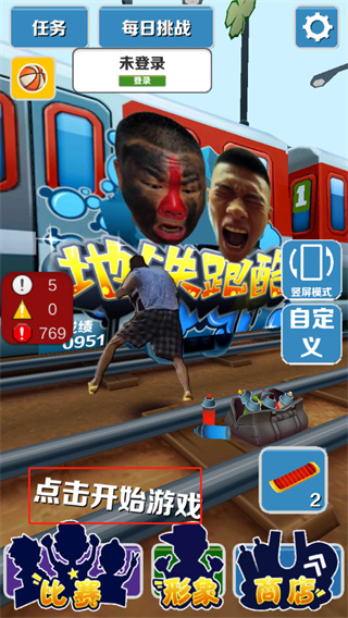 愣子跑酷坤坤版是一款趣味十足的休闲益智跑酷类手游,由网络大神根据网红牛牛和愣子改版而来,在原版地铁跑酷中添加修改了大量魔性搞笑元素,比如玩家可以根据需求把主角的头部替换成愣子的头或者直接把跑酷的主角换成愣子的鬼畜跑步动图,玩家进入游戏即可自由定制游戏,不论是选择竖屏或者横屏的方式来进行跑酷,设置愣子的3D头像,或者设置愣子那“魔鬼般的步伐”动图来跑酷,不论哪种都在欢乐的背景音乐中显得爆笑雷人。