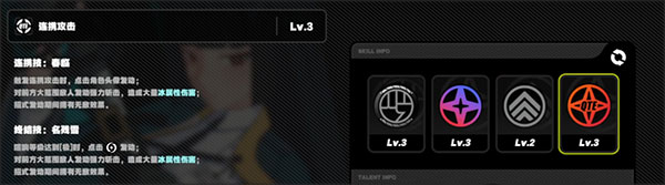 关于雅的大招终结技:名残雪,当能量满足之后发动大招可以造成大量的冰属性伤害且发动的时候可以拥有无敌的效果,并且触发支援技的话还可以产生辅助前场的效果,也是属于有大招就放的角色。