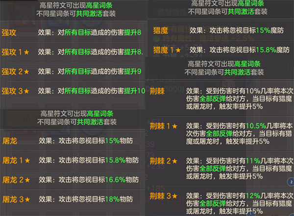 2、符文词条的特性: