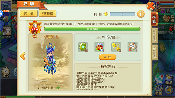 4、游戏首次登入就送神尊VIP特权。