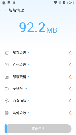 【超强垃圾清理】独有文件扫描引擎,瞬间将手机垃圾一扫而尽。