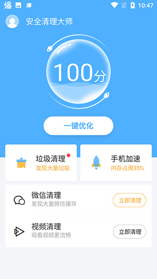 最近我发现我的安卓手机总是卡得不行,尤其是玩大型游戏的时候,简直是要崩溃。后来我找到了这款“安全清理大师”,它真的是我的救星!软件体积很小,安装包也不占内存,用起来特别顺手。它的垃圾文件扫描引擎真的很强大,能快速清理那些藏在手机里的各种垃圾文件,微信缓存、视频缓存、音乐缓存什么的都能一扫而光。