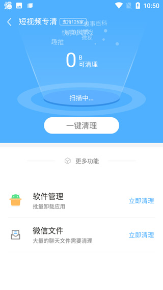 每天用这个软件清理一遍,感觉手机又回到了新机时代的流畅度,玩游戏再也不卡了!它还有专门的微信清理功能,把那些无用的聊天记录和朋友圈缓存都清理得干干净净,特别适合像我这样经常用微信的人。另外,它的视频专清功能也很实用,我可以批量管理那些看过的短视频,释放手机空间。