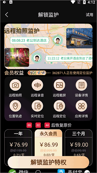 守护亲友APP的使用,需要双方用户安装、注册、双方付费、授权后才能使用。请务必得到他人同意后再进行安装使用;