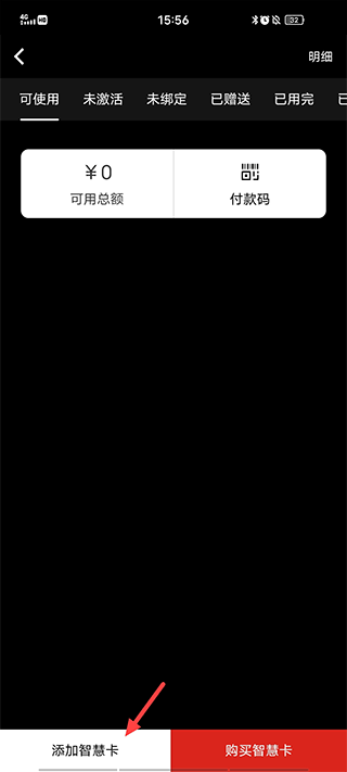 2、最后,点击屏幕下方的【添加智慧卡】按钮,即可绑卡。