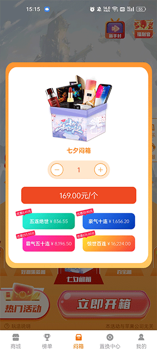 2、如果有你想要的商品,可以点击立即开箱,可以选择开启多少个箱子;