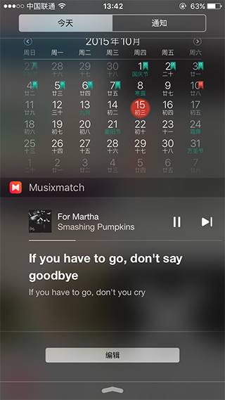 如果你实在不喜欢将 Musixmatch 当作常规播放器,也可以照常使用自带的「音乐」应用,然后在通过 Musixmatch 的通知中心小部件显示歌词。