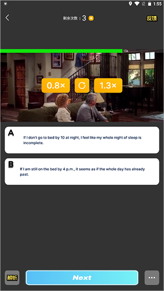 3、在听力过程中就可以边观看视频边进行逐篇逐句地进行听力测试了