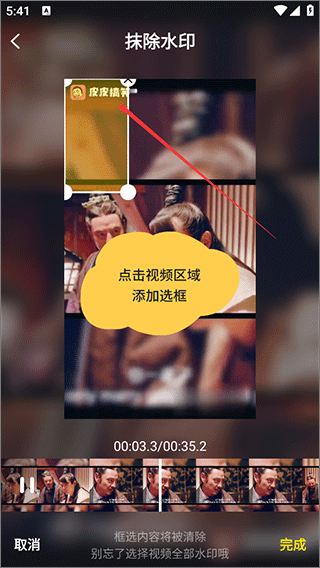 4、手动移除水印,选择需要移除水印的区域,选中框后点击移除水印,即可无痕迹地擦除水印。