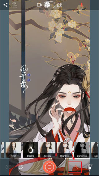 5、而且点击最上方的手势按钮,可切换到图片最初始化的样子,再此点击即可回到特效;