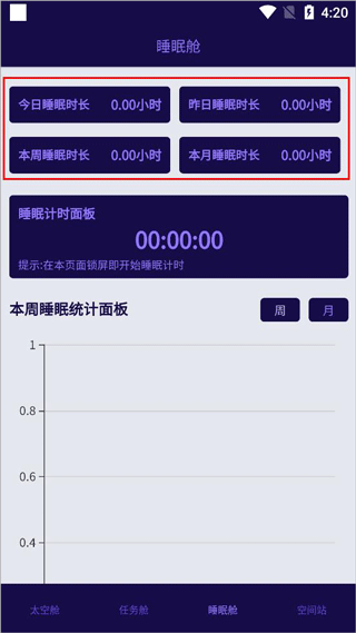在睡眠舱中锁屏手机即可开始睡眠计时,睡眠统计面报让您的睡眠时间一览无余。