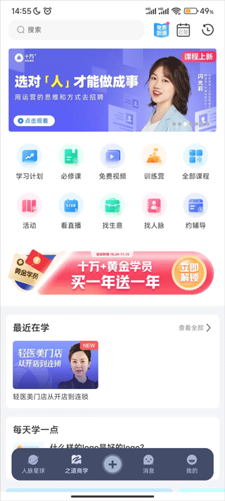 “十万个创始人”是一款专为创业者、上班族和学生打造的创新创业学习平台。用户可以在这里拓展人脉、观看课程、寻找商业合作,功能非常全面。软件特色包括在线提问随时解答、动态页面互动、数十万创业者交流以及学习进度记录等实用功能。想要观看课程也很简单:首页点击“全部课程”就能找到自己感兴趣的课程开始学习。