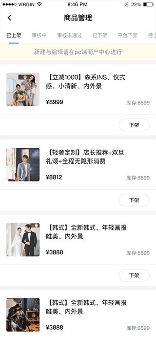 6、掌握审核进度,在商户中心中app中添加新品的时候可以在此实时的关注新品上架的审核情况。
