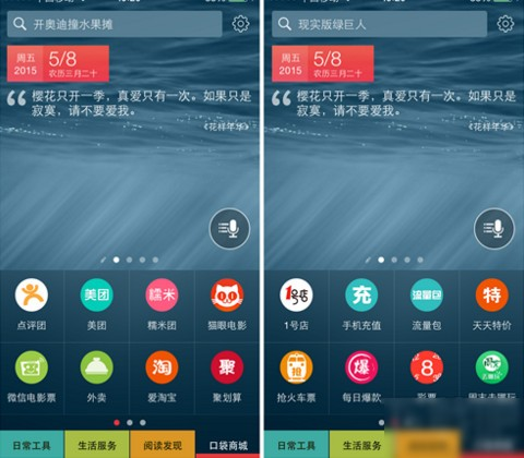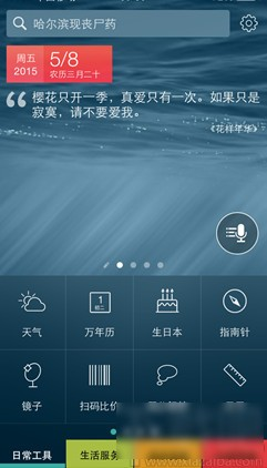 1、下载安装口袋工具后,打开“口袋工具”,一目了然的界面就呈现出来口袋工具主要分为四方面:日常工具、生活服务、阅读发现和口袋商城。
