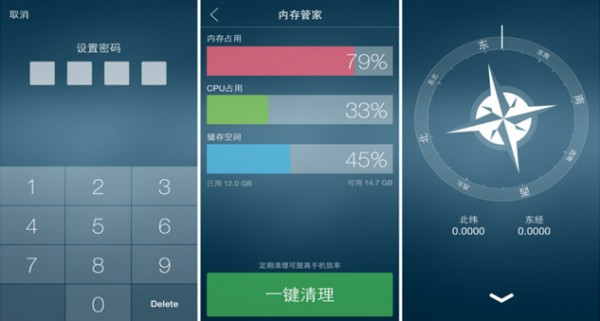 常用工具包含:私密相册、内存管家、天气、万年历、生日本、指南针、镜子、扫码比价、周公解梦、尺子、电池管家、记账本、记事本、手机营业厅、网速测试、苹果保修、PM2.5、中英词典、倒数日、科学计算器、汇率转换、密码备忘录、单位转换、手电筒、尺码比照表等。
