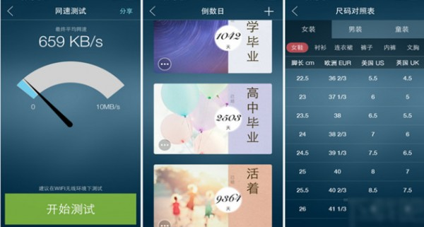 (4)网速测试:对于经常遇到网速不佳的朋友,这个工具比较好,告知你网速情况,还可以分享给你的朋友;(建议在WIFI无线环境下测试)