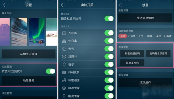 很多朋友都忽略了“口袋工具”——“设置”中蕴含的一些小编觉得很好的功能:开启按使用次数排列工具、设置私密相册密码、设置备忘录密码、设置记事本密码、清理缓存。