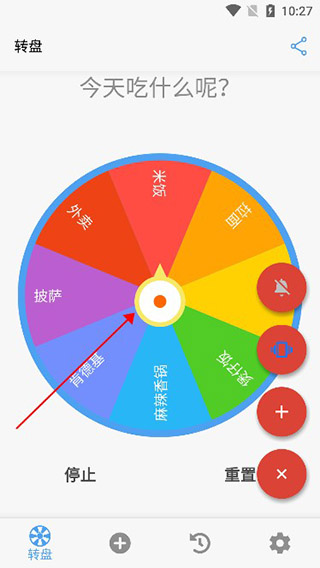 1、在本站下载安装下决定app,我们可以在首页看到默认的转盘:今天吃什么