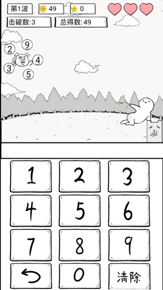 通过左侧出现的鬼畜怪身上的数字来计算综合,同时在游戏键盘上直接输入答案即可,在计算的过程中要快速准确,若鬼畜怪移出右侧会扣除玩家血量,血量消耗完毕,则游戏失败。
