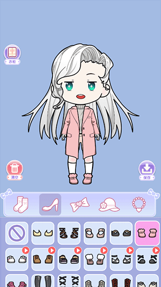 3、多种风格随心搭配,从发型,发色,妆容,服装,配饰,鞋子,还有贴纸可以更换哦。
