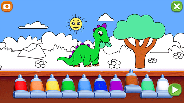 2、例如这里需要我们给恐龙上色,选择下面的颜料对准相应的位置就可以上色了