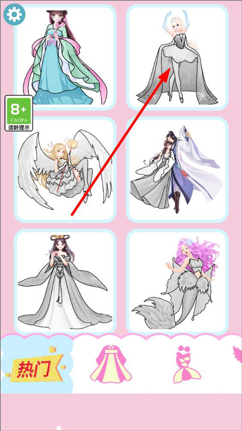 1、玩家打开游戏,进入主页,可以选择喜欢的裙子类型进行设计和填涂颜色;