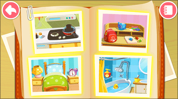 游戏里有四大主题场景,每个场景都能学到不同的日用品知识。比如在厨房可以学用锅炒菜,在书房可以用卷笔刀削铅笔,这些都能让宝宝动手动脑,挺有意思的。还有DIY设计功能,孩子可以根据自己的喜好设计专属的日用品,这样玩起来更有趣味性。